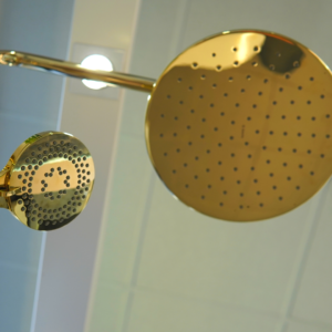 Złota armatura świetnie prezentuje się na tle kolorów ziemi, jest dobrym uzupełnieniem wnętrz z granatem i butelkową zielenią oraz kocha naturalne materiały, np. marmury, drewno czy beton.