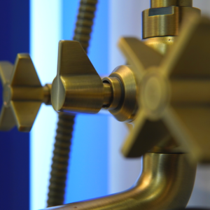 Złota armatura świetnie prezentuje się na tle kolorów ziemi, jest dobrym uzupełnieniem wnętrz z granatem i butelkową zielenią oraz kocha naturalne materiały, np. marmury, drewno czy beton.